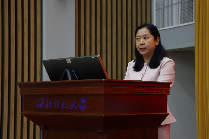朱珊珊在致辞中代表兰州大学工会、妇联向大会的召开表示热烈的祝贺!她表示,希望两校能以西北师大妇联成立为契机,进一步加强妇联组织之间的交流与合作,以时不我待的紧迫感不断推进自身改革和建设,互相借鉴妇女工作的有效做法和成功经验,探索促进女性全面发展的新机制、新路径,共同研究解决高校妇女工作面临的新问题、新挑战,鼓舞和激励广大女性师生奋进新征程、建功新时代,携手促进甘肃高校妇女事业蓬勃发展。